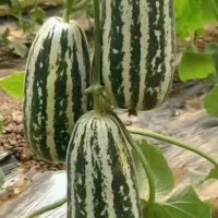 二、美都西瓜苗:中熟杂交种。常温下开花至果实成熟约40天,一般单瓜重5千克以上。果实圆球至高球型。果皮绿色,覆有墨绿条纹。如果实膨大期遇低温,果皮底色和条纹会加深。果肉桃红色,甜而多汁,中心可溶性固形物11~12%,边可溶性固形物8~9%。果皮较84~24略硬,较耐储运。美都西瓜苗,耐低温、坐果性好,抗病丰产,品良,为早春大棚定植品种。